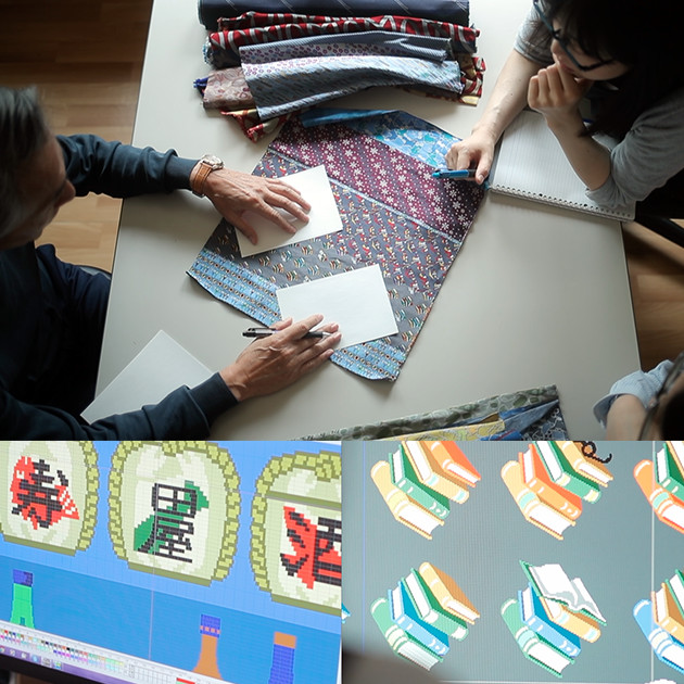 決定したデザインを「織り出し」と呼ばれる生地見本(試し織り)で、お見せします。(ご来社もしくはご発送)実際の仕上がり(柄の表現、配色)をご覧いただいた上、修正を行い、最終確認、お見積りの発行、正式なご発注となります。