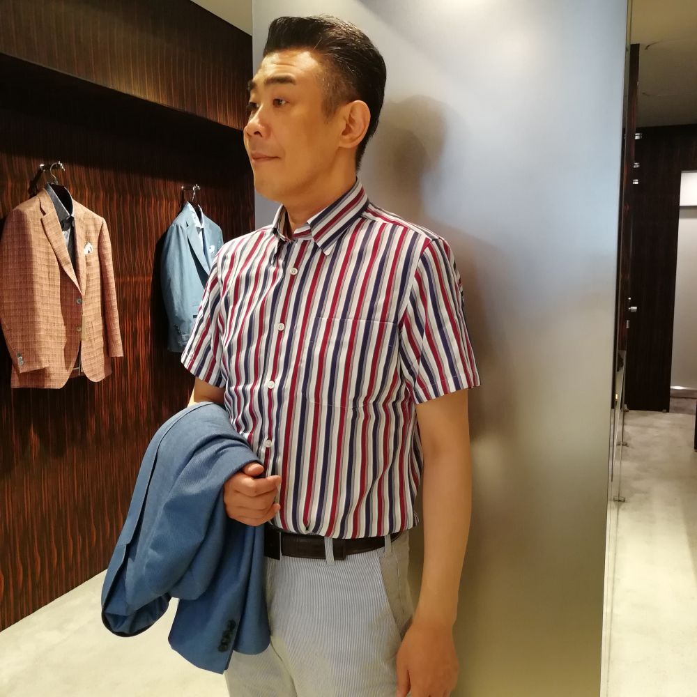 この夏は、カラフルな配色のシャツに挑戦してみるのもお薦め。